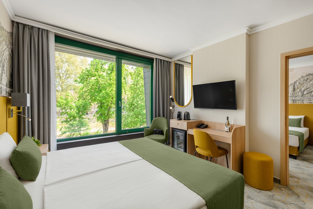 2 ágyas, pótágyazható, fürdőszobás (zuhanyozós vagy kádas) superior szoba (LCD tv, minibár, hajszárító, WiFi, légkondi, széf).