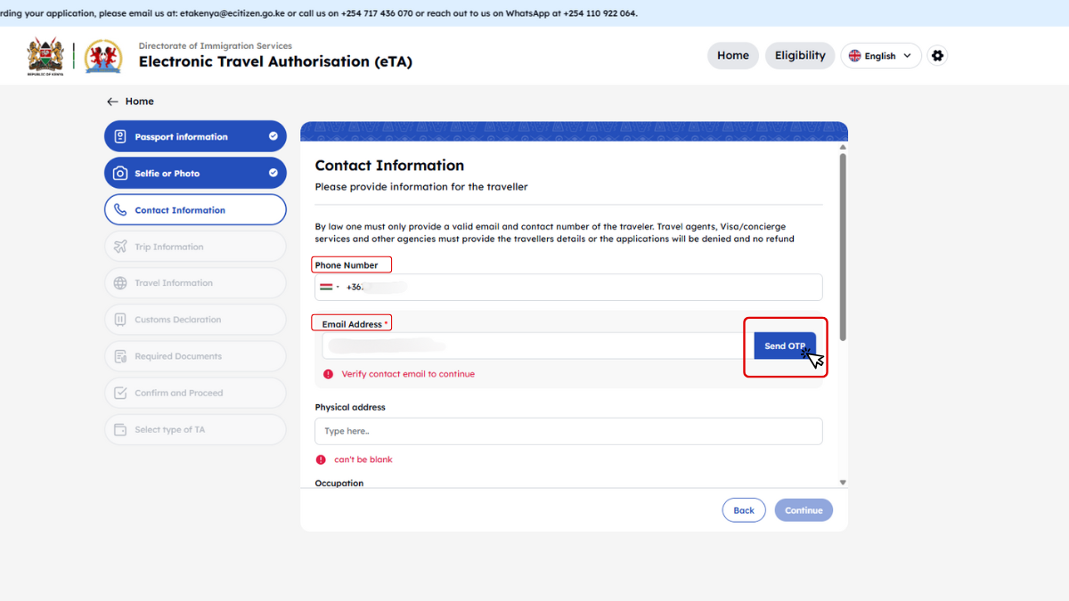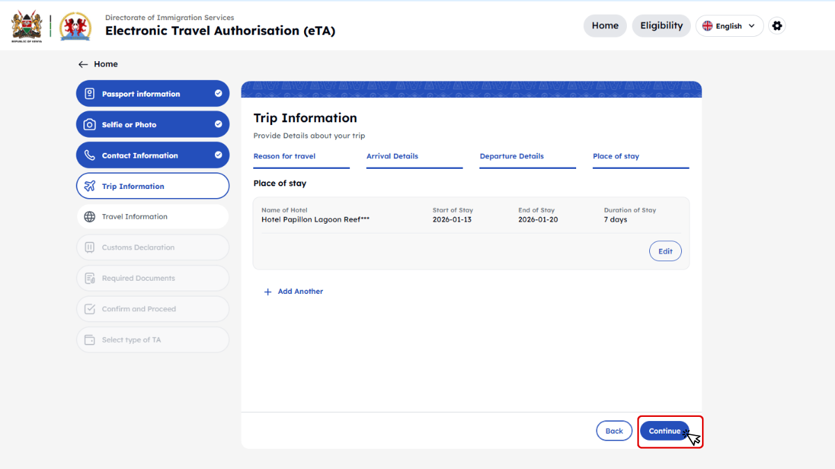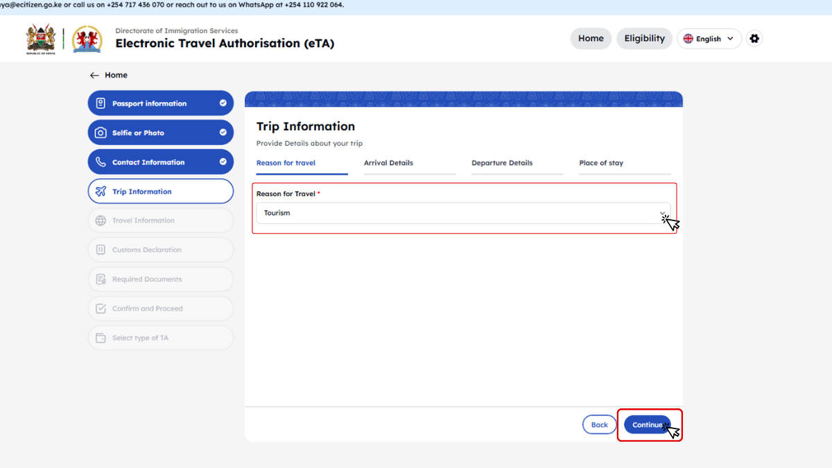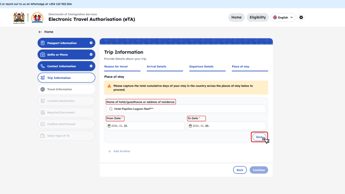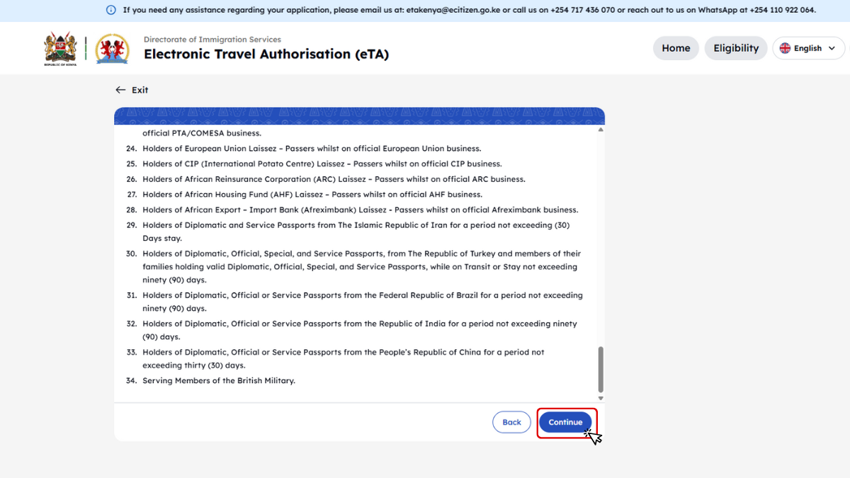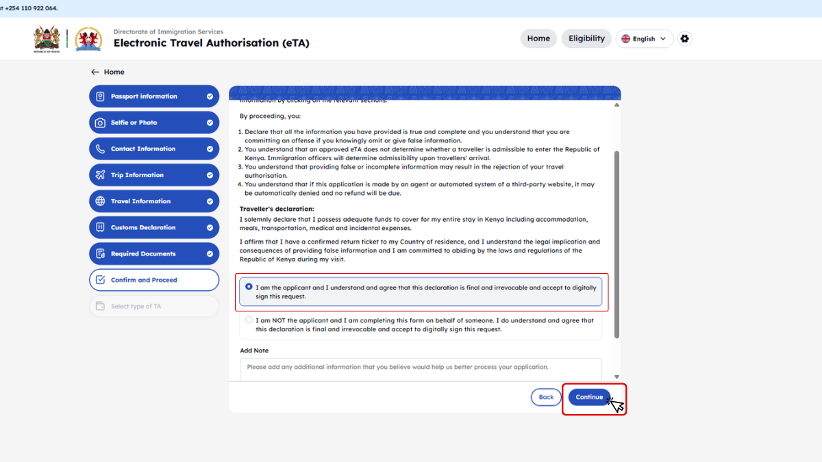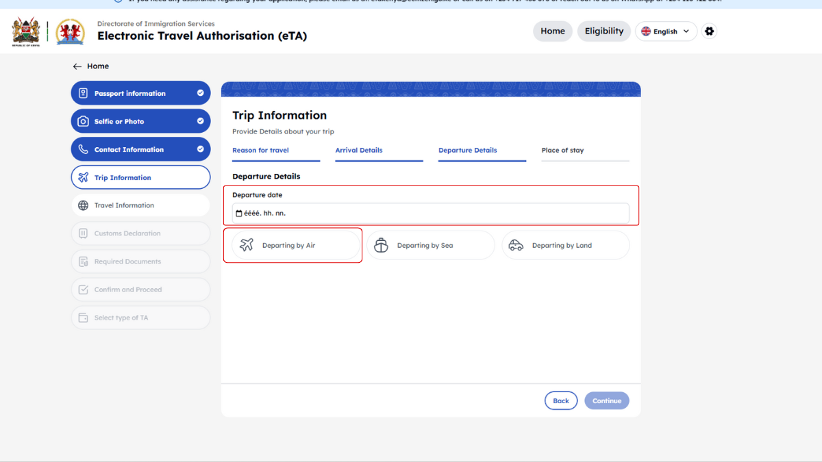 Kenya minden utazótól – beleértve a gyerekeket és csecsemőket is – megköveteli az Elektronikus Utazási Engedélyt (eTA), amelyet az utazás előtt kell online igényelni.