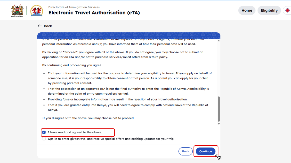a kenyai bevándorlási hatóság felhasználhatja adatainkat az utazási jogosultság ellenőrzéséhez,