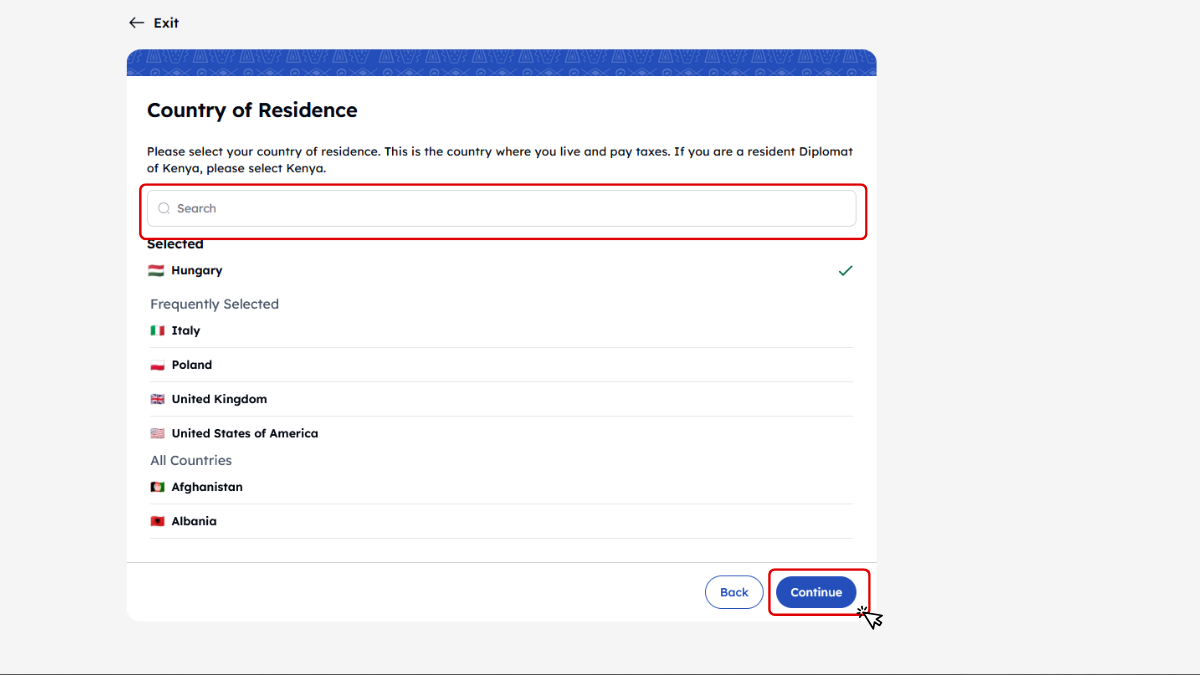 6. lépés - Country of Residence – Lakóhely szerinti ország