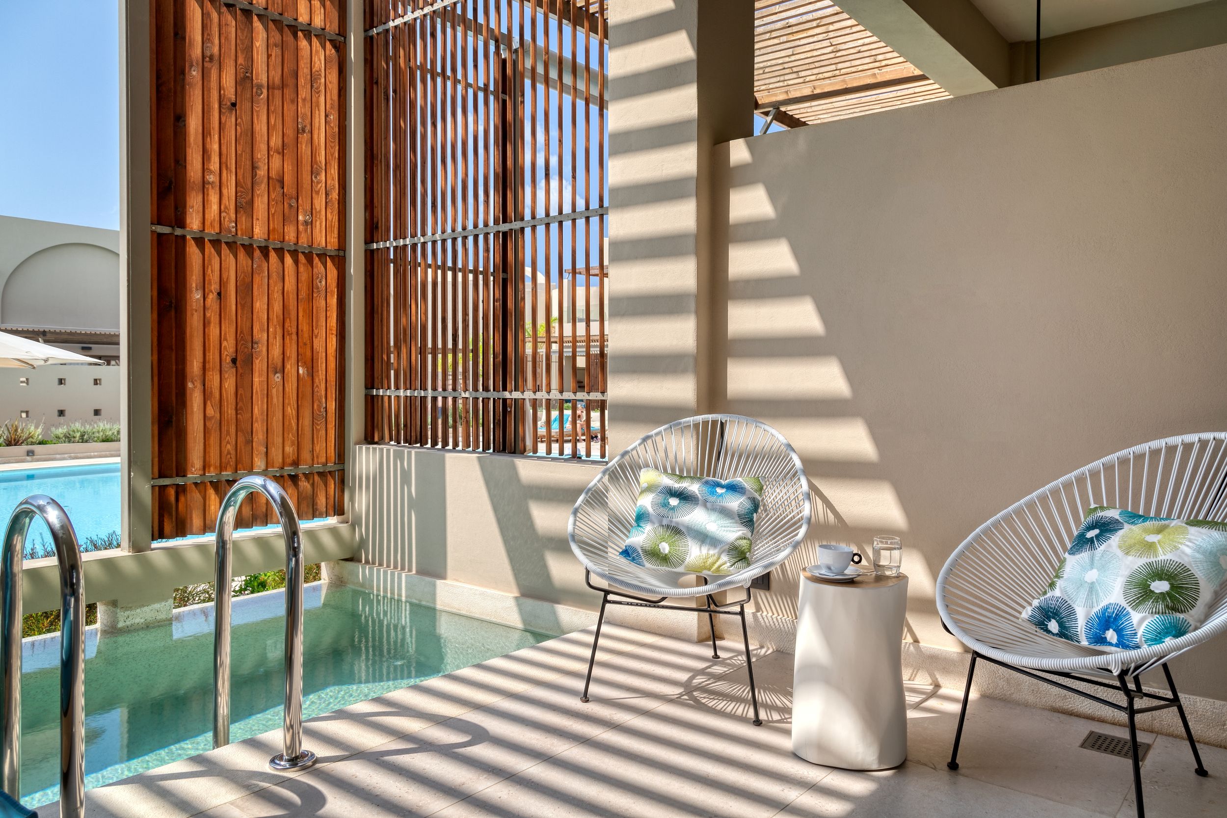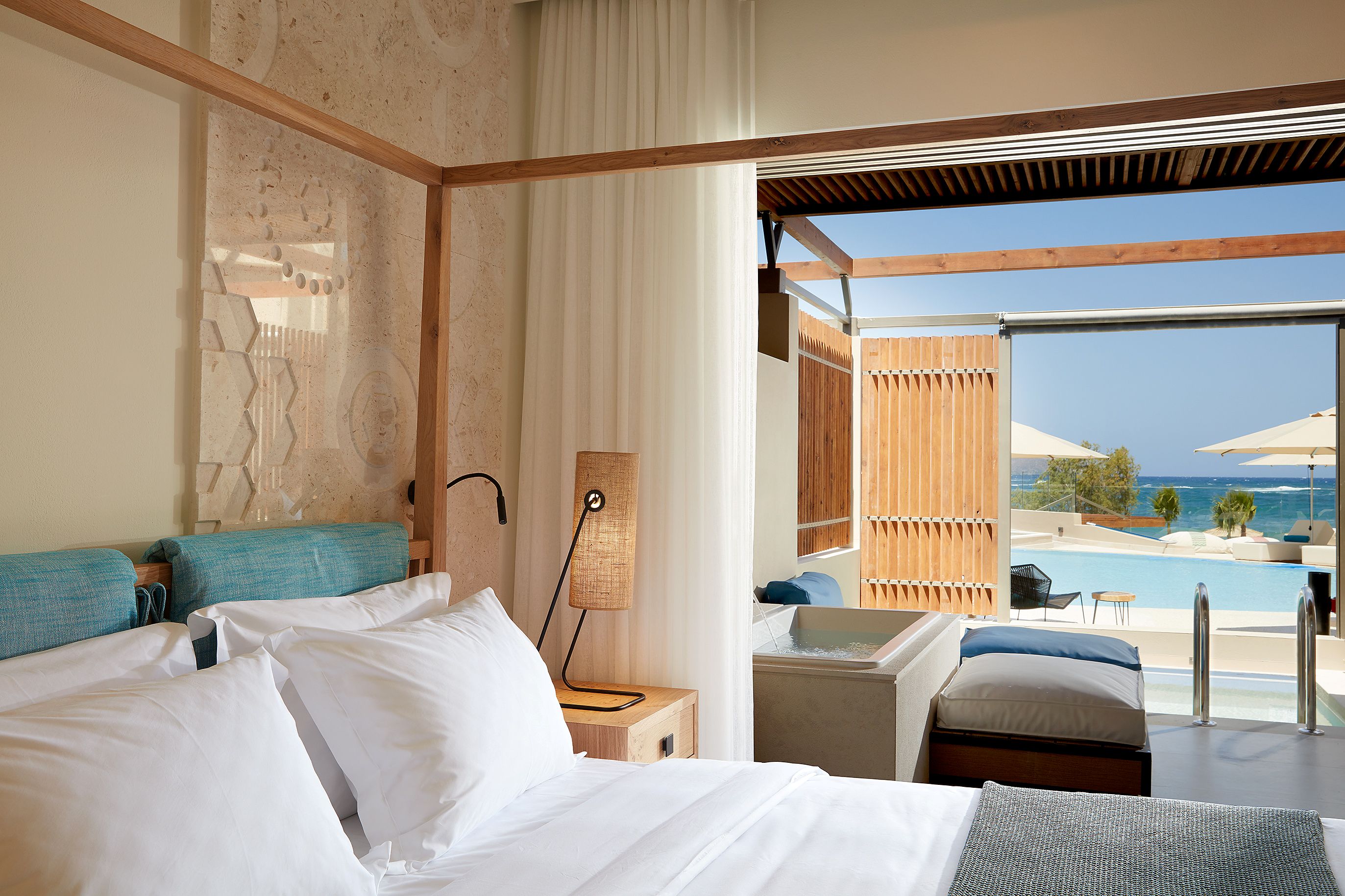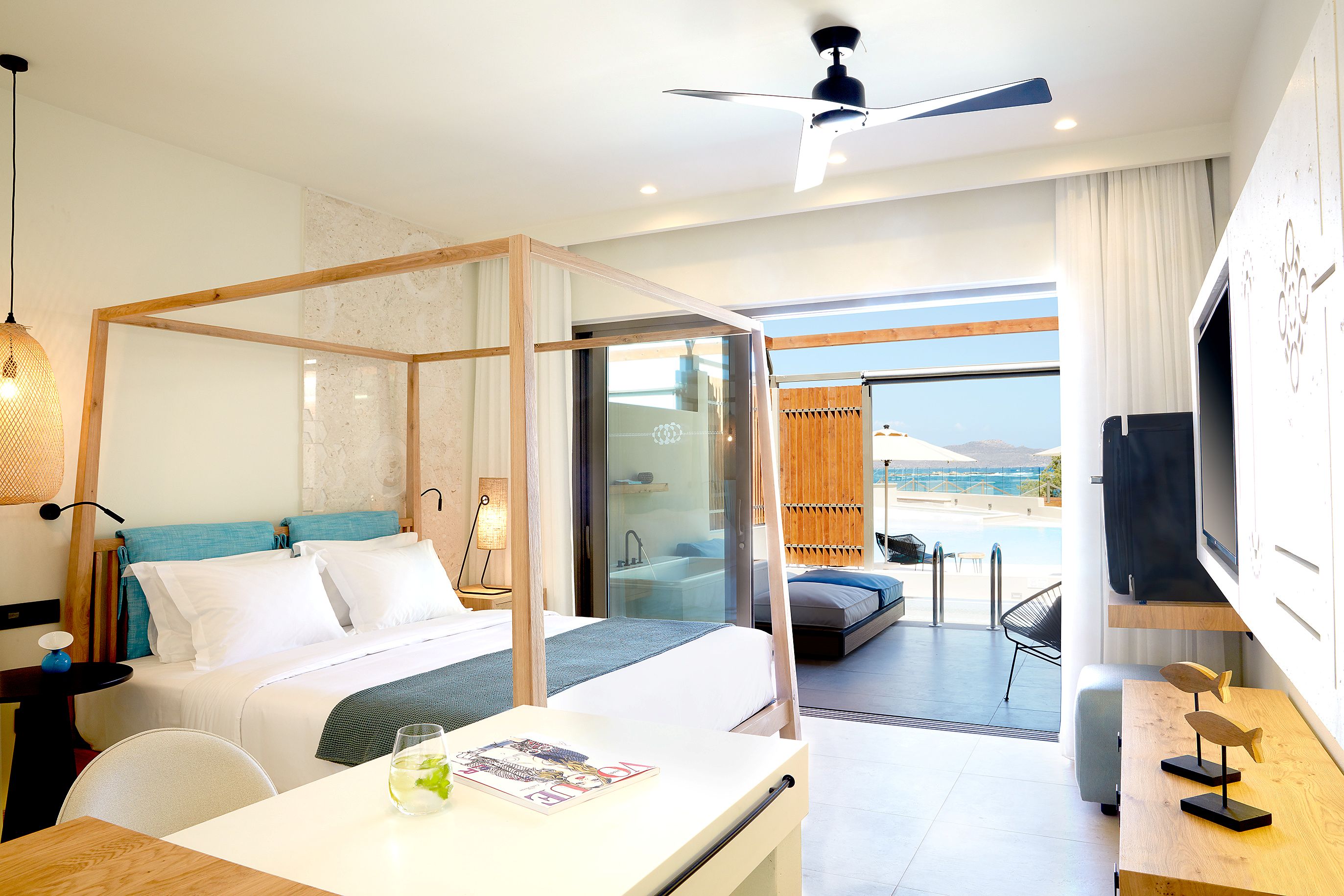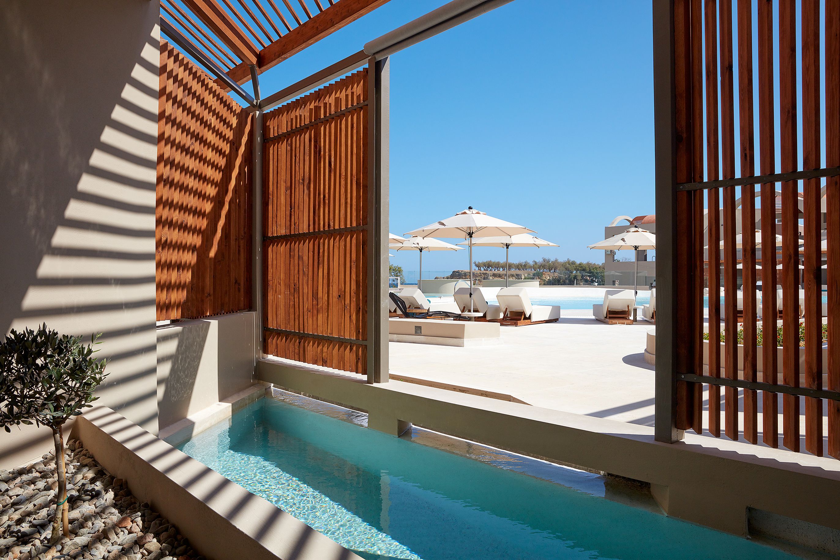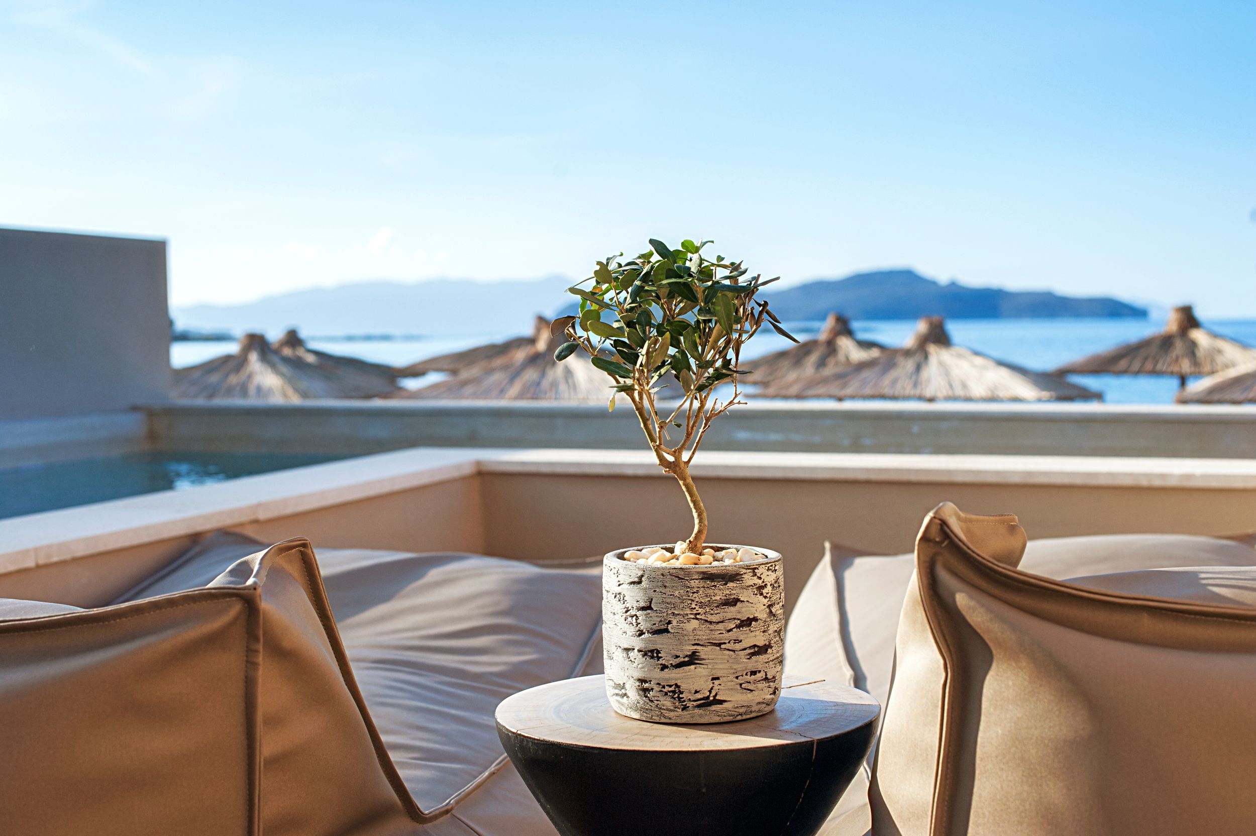 Kültéri medence, mely körül napernyők és nyugágyak ingyenesen vehetők igénybe. Kiemelkedő minőségű Topos étterme tradicionális görög fogásokkal (seafood ételek) hívogatja kulináris kalandokra a vendégeket. Raw bárjában sushi különlegességeket, újragondolt snackeket és harapnivalókat, valamint a hozzájuk passzoló italokat kóstolhatunk meg. Díjnyertes Soma SPA központjában változatos kezelések közül válogathatnak a vendégek, míg a mozgás szerelmeseit a 24 órás nyitva tartassál üzemelő fitnesz-terem várja. Lehetőség van különféle órákra is becsatlakozni, úgymint jóga, pilátesz és TRX. Igény esetén akár személyi edző segítségét is igénybe lehet venni. (A SPA központ szolgáltatásai és kezelései, valamint a fitnesz-terem és bizonyos szolgáltatási térítés ellenében vehetők igénybe).