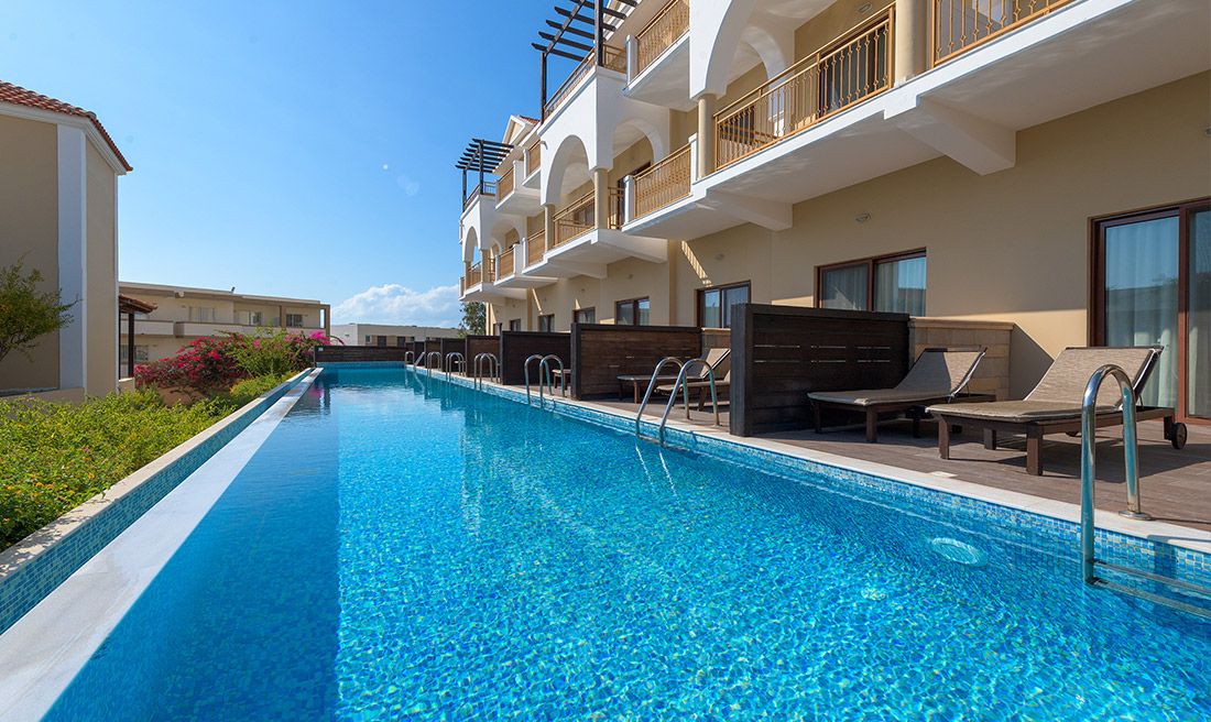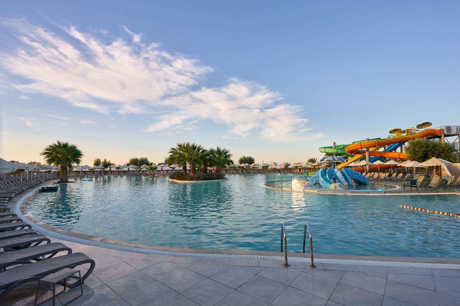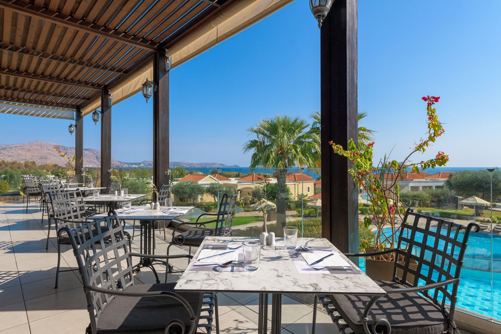 A festői Kiotari-öbölben fekvő 5 csillagos, 527 szobás 5 csillagos luxus szállodakomplexum kiváló All Inclusive ellátással büszkélkedhet, lenyűgöző kilátással az Égei-tengerre, valamint parkosított kertekkel, lagúna kialakítású medencékkel.