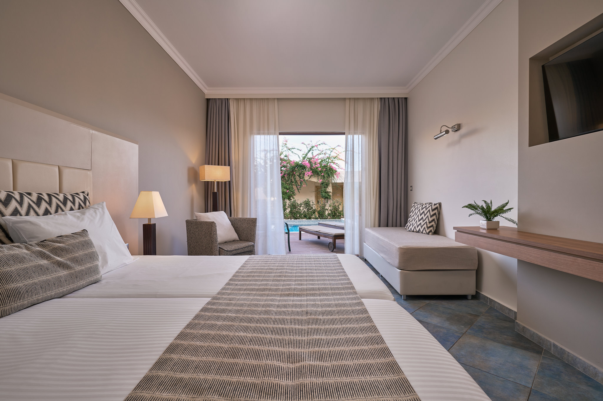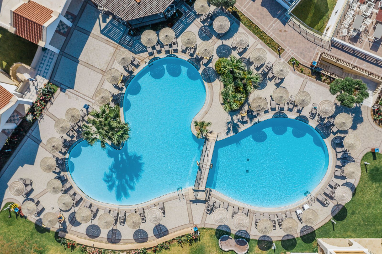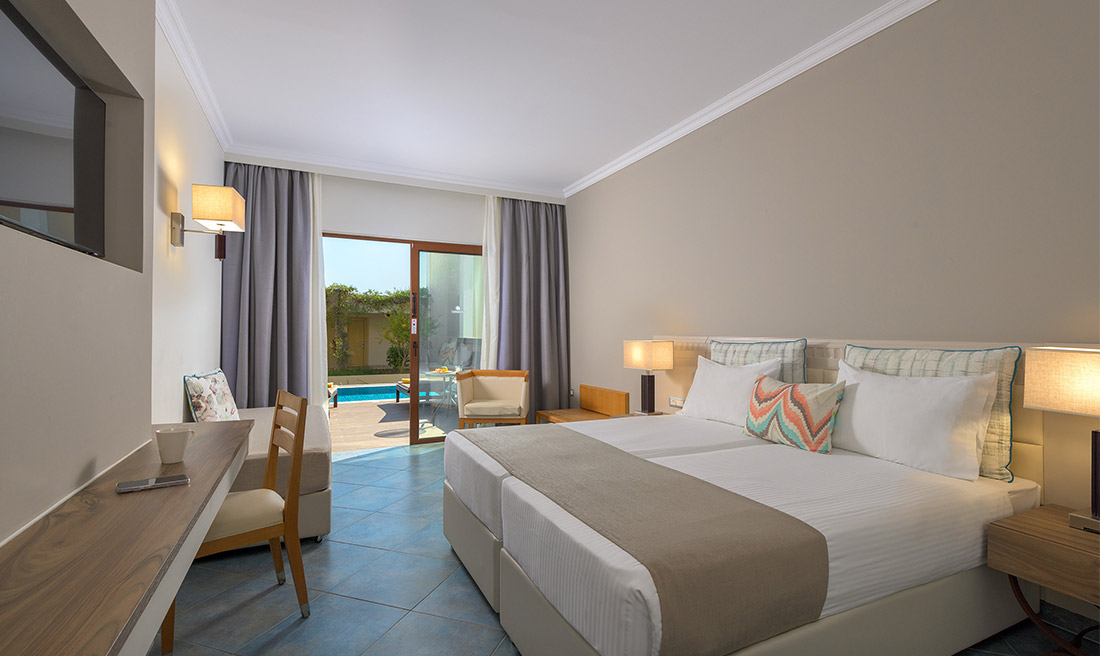 A festői Kiotari-öbölben fekvő 5 csillagos, 527 szobás 5 csillagos luxus szállodakomplexum kiváló All Inclusive ellátással büszkélkedhet, lenyűgöző kilátással az Égei-tengerre, valamint parkosított kertekkel, lagúna kialakítású medencékkel.