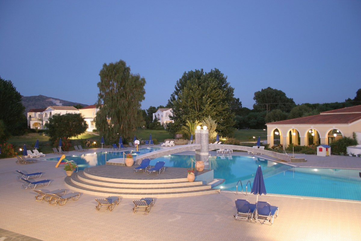 Laganas és Kalamaki között (kb.1-2 km), közvetlenül a főút mellett található, a földszintes főépületből és három kétszintes épületből álló, 38 szobás, családias szálloda együttes. Hatalmas, gondozott kertjében mediterrán növényeket, virágokat csodálhatunk meg. A homokos tengerpart kellemes sétával érhető el (kis fenyőerdőn keresztül kb. 450 m), tavernák, kávézók, üzletek, vendéglők (kb. 0,5-1,5 km) találhatók. Helyi buszközlekedés megállója a hotel bejárata közelében helyezkedik el.