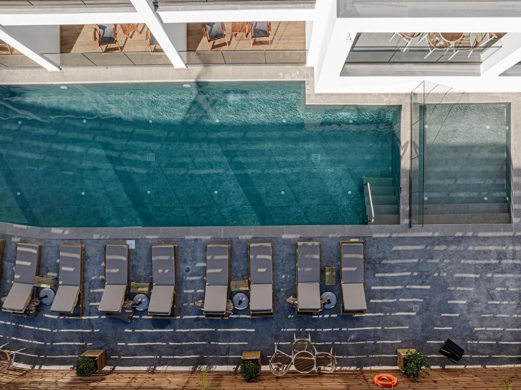 Tragaki településen, zöldövezetben, a homokos/kavicsos tengerparttól mindössze kb. 200 méternyi távolságra, közvetlenül a Mirage Bleu Hotel mellett elhelyezkedő, 70 szobás, 5 csillagos, magas színvonalú szálloda, amely tökéletes választás pároknak, családoknak egyaránt. Mindkét szálloda az MB Group szállodalánc tagjaként üzemel. A legközelebbi supermarket, éttermek, bárok (kb. 100 m), valamint a település központja egy kényelmes sétával (kb. 500 m) elérhető.