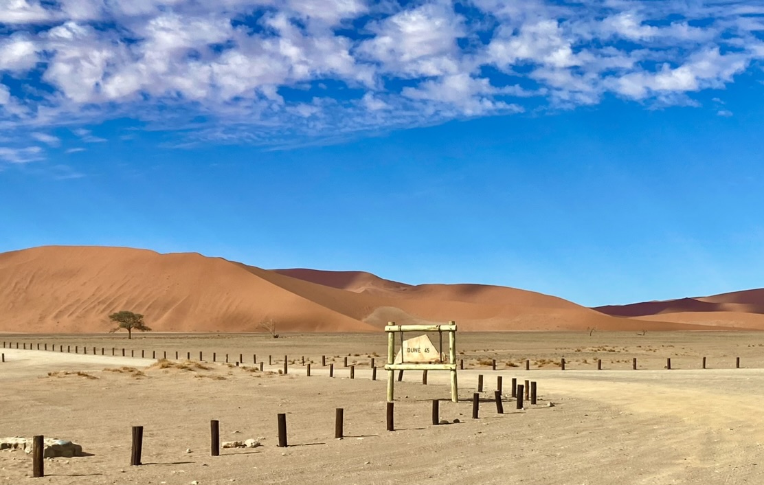 Kora reggeli órákban indul a túránk a Namib Naukluft Nemzeti Parkba. A hőséget megelőzve buszunkkal a Namíbiára oly jellemző sivatagi homokdűnék mellett haladunk, amelyek vörös színe látványos kontrasztban van a kék éggel. Utunk első állomásán 4 kerék meghajtású terepjárókba szállunk, amivel eljutunk a Sosussvlei-ig. Onnan gyalogosan megyünk az ikonikus Deadvlei-ig, ahol 900 éves égnek meredő fatörzseket látunk, amelyek a rendkívül száraz éghajlat következtében kövesedtek meg. A túra második felében megállunk többek között a leghíresebb Dune 45 nevű dűne alatt, amely 170 méter magas és aki fittnek érzi magát felmászhat a tetejére, ahonnan gyönyörű panoráma nyílik a lélegzetelállító tájra. Utolsó állomásunk a Sesriem Kanyon, aminek kétoldalt magasodó kőfalai között valamikor sebes folyó vágtatott és festői sziklaformátumait gyalogosan fedezzük fel. Vacsora a szálláson.
