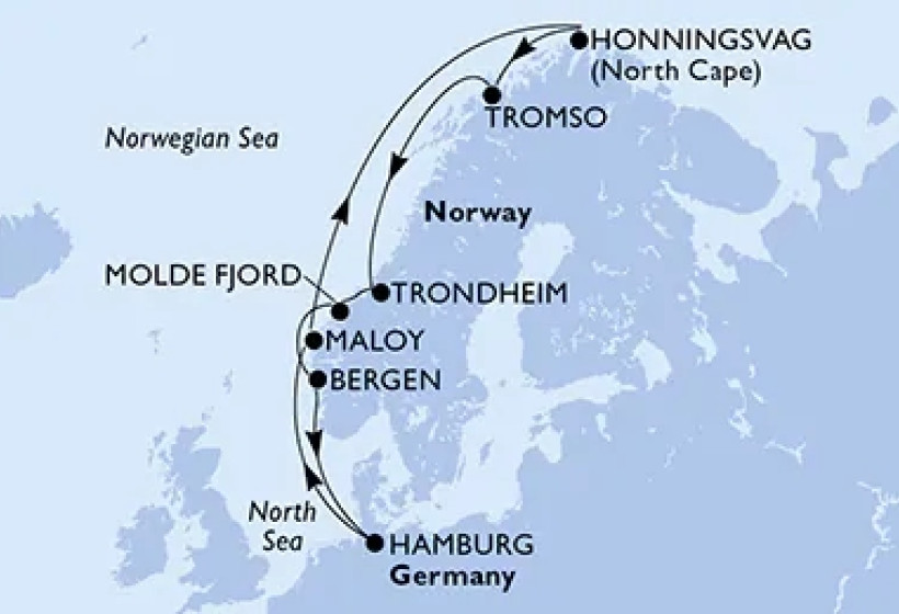 A XX. század elején egy tűzvész szinte teljesen elpusztította a várost, amelyet szecessziós stílusban építettek újjá, 2009-ben elnyerte a „legszebb norvég város” címet. Kikötést követően Alesundban egyaránt felfedezhető az építészet, a természet és a fjordok csodálatos világa.