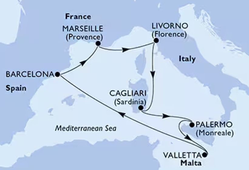 Megérkezést követően beszállás a hajóba és az esti órákban megkezdődik kihajózás Marseille irányába.