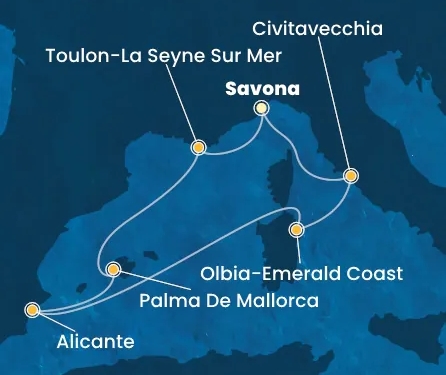 Az útvonal következő állomása a Szardínia észak-keleti részén, a híres Smaragd-part mentén fekvő kikötőváros, melynek természeti szépsége rabul ejti a látogatót. A városban és környéken töltött idő méltó része ennek az élményekben gazdag hajóútnak.