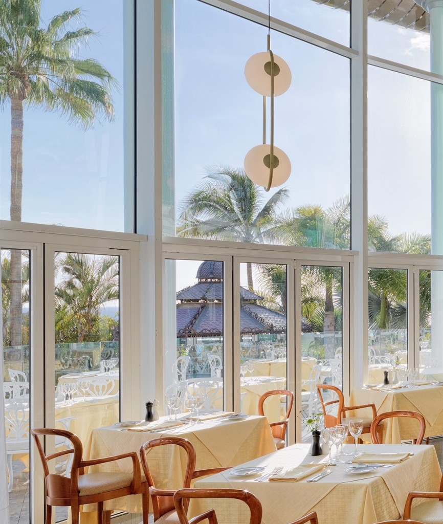 Étkezés: • La Cúpula étterem: A hotel á la carte étterme egyike a sziget legkiválóbb fine dining éttermeinek, ahol a francia és kanári konyha fúziójának remekeit kóstolhatja. A gasztronómiai utazás színvonalát tovább emeli az étterem kialakítása, melytől garantáltan eláll majd a lélegzete! Előzetes asztalfoglalás szükséges! • Solandra étterem: A hotel svédasztalos éttermében luxuskörülmények közt fogyaszthatja el reggelijét és vacsoráját. Reggelire széles választékban kínálnak hideg és meleg ételeket, valamint kézműves péksüteményeket. Vacsoraidőben a világ számos pontjára kalauzolja Önt az étterem választéka a nemzetközi fogásokkal. Ezen felül heti több alkalommal is tematikus vacsoraesteken vehet részt. • La Cascada étterem: Az étterem - nevéhez hűen - a trópusi kertben, a vízesések mellett helyezkedik el. Talán nincs is kellemesebb érzés vacsora közben, mint a víz csobogását hallgatni. Válasszon a mediterrán konyha ételeiből, kóstoljon meg egy (vagy több!) tapast és csemegézzen a salátabár kínálatából! • Tiffany's bár: A hotel káprázatos, festett üveg kupolája alatt találja a bárt, ahol egy világszinten elismert bármixer keveri italait esténként. Ráadásként esténként zongoraszó segít az ellazulásban. Nyári szezonban esti szórakoztató showműsorokat tekinthet meg a bár teraszán. • La Cascada bár: Az azonos nevű medence partján fekszik az a bár, ahova egészen biztosan ellátogat majd, amikor felfrissülésre vágyik a napozás után. A bárból továbbá lenyűgöző kilátás nyílik a végtelen Atlanti-óceánra. • Galería bár: Amennyiben kicsit lelassítana és megpihenne egy jó könyv társaságában, ez a bár lesz a kedvence. Kávé- és teakülönlegességek, valamint házi készítésű sütemények szolgálnak majd kiegészítőül, nem is akármilyen minőségben!