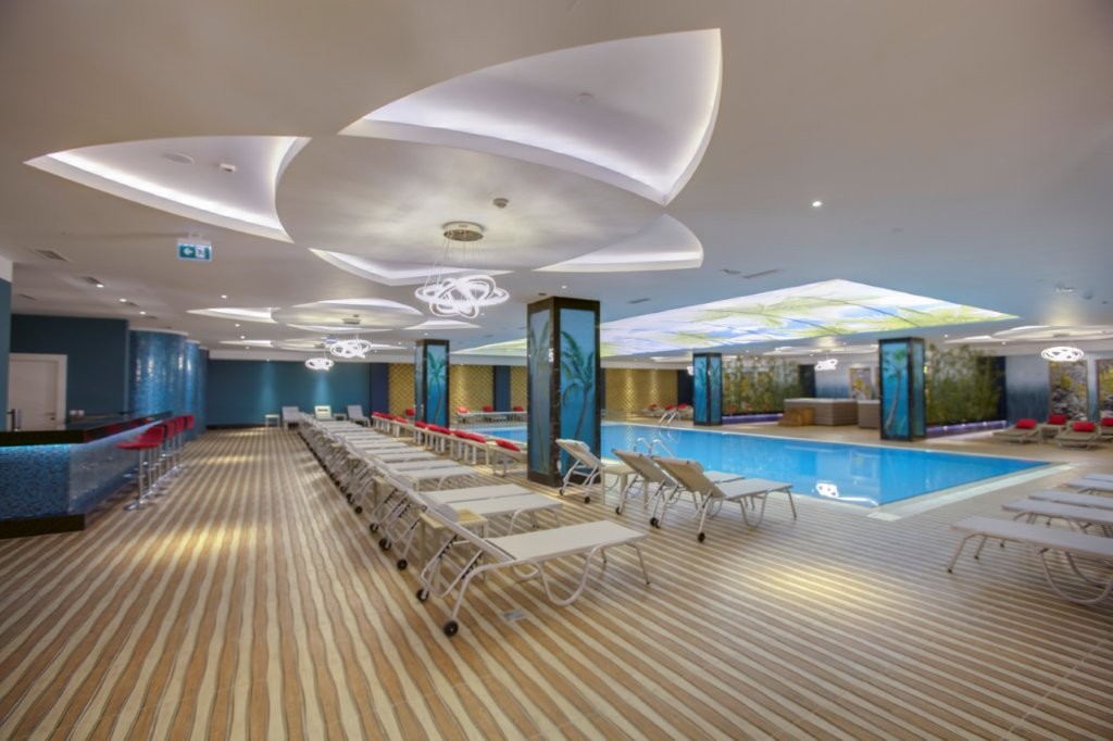 A 2015 májusában megnyílt Azura Deluxe Hotel a Török Riviéra alanyai régiójának egyik ikonikus épülete; magasló aranyszínű szobrai már messziről lenyűgözik, modern, pezsdítő színvilágban pompázó belső terei újfent ámulatba ejtik az ide utazót. Fordítson hátat néhány napra a rohanó hétköznapoknak és élvezze a török vendégszeretetet ebben a csodás szállodában! Az 5 csillagos hotel az antalyai repülőtértől 98 km-re, Alanyától 22 km-re, Incekum üdülőhelyen terül el közvetlenül homokos-kavicsos strandján. A tengerben kisebb-nagyobb kövek és sziklák előfordulhatnak, ezért fürdőcipő használata javasolt. A környező városokba és Alanya központjába taxival vagy dolmussal könnyedén bejuthatunk.