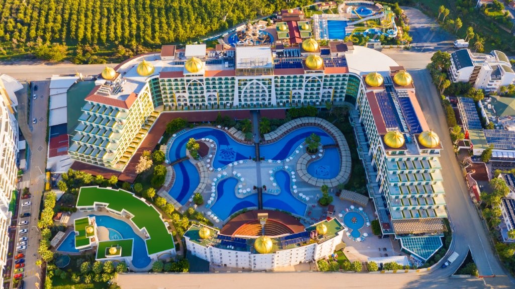 A helyi besorolás szerinti 5* hotelkomplexum az antalyai repülőtértől 107 km-re, alanya központjától kb. 15 km-re, homokos- kavicsos strandszakaszától pedig 600m -re fekszik, ahova ingyenes shuttle járattal könnyedén eljuthatunk. A szálloda nagy aquparkja és számtalan szolgáltatása várja kicsiket- és nagyokat egyaránt, hogy minden korosztály feltöltödve és élményekkel telve tölthesse nyaralását.