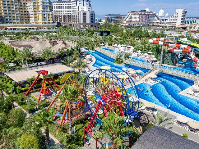A 2011 áprilisában megnyílt, egyedi építészeti stílusú, 53.000 nm-en elterülő, elegáns, közkedvelt luxusszálloda a repülőtértől 15 km-re, Antalya központjától 17 km-re, a híres Lara Beachen fekszik, közvetlenül a homokos-aprókavicsos tengerparton. A városba taxival vagy dolmussal könnyedén bejuthatunk.