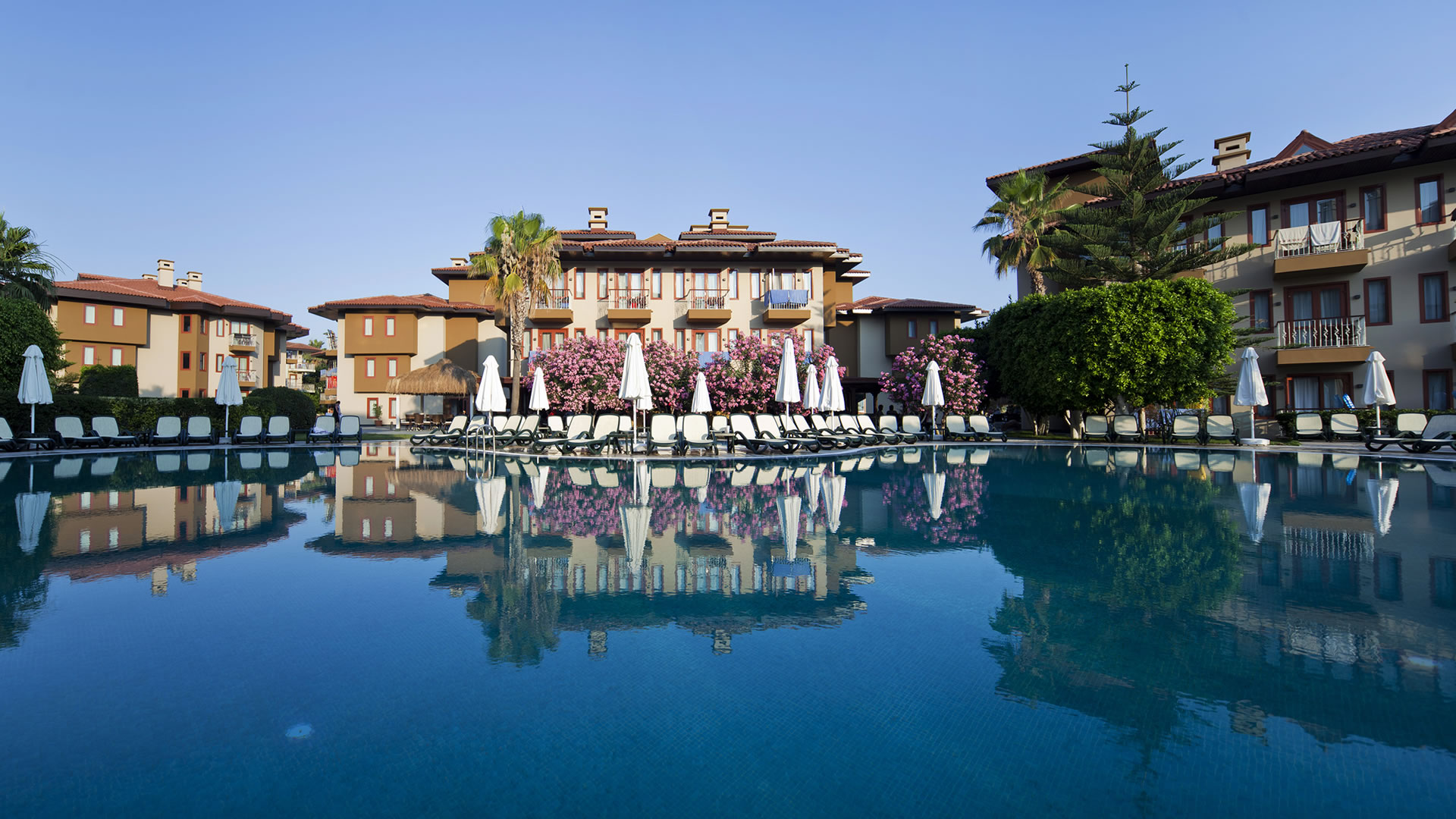 A 2011-ben teljeskörűen felújított, európai vendégek körében kedvelt, családbarát, 22 blokkból álló komplexum 60 km-re fekszik az antalyai repülőtértől kb. 10 km-re Side központjától, közvetlenül a homokos, lassan mélyülő tengerpart mentén. A 73.000 nm-en elterülő, fantasztikus üdülőkomplexum számtalan szórakozási lehetőséggel várja a kicsiket és nagyokat egyaránt. A hatalmas, gyönyörű kertben elterülő Amazon vízipark biztosítja a vizes élmények sokaságát csúszdákkal, lusta folyóval, őrült folyóval, hullámmedencével vagy éppen felfedezhetjük a barlangi medencét is. A szálloda nemcsak a szórakozásra, de a minőségi étkezésre is nagy hangsúlyt fektet: húskészítményeik, tejtermékeik; valamint zöldség- és gyümölcs kínálatuk is mind saját termelésű. Itt minden adott a felhőtlen kikapcsolódáshoz! Nyúljon el a medenceparton, élvezze a frissítő habokat vagy fedezze fel a helyi specialitásokat. A szálloda néhány szolgáltatását testvárszállodájával, a szomszédos Club Grand Aqua hotellel biztosítja.