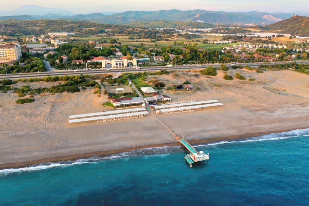 A 2019 -ben épült, kiváló ár-érték arányú szálloda 86 km-re fekszik Antalya repülőterétől és 20 km-re Side központjától. A 200 m hosszan elnyúló homokos, aprókavicsos strandtól, mely egy alagúton át közelíthető meg és ahonnan gyönyörű kilátás nyílik a tenger végtelenjére, csak a parti út választja el.